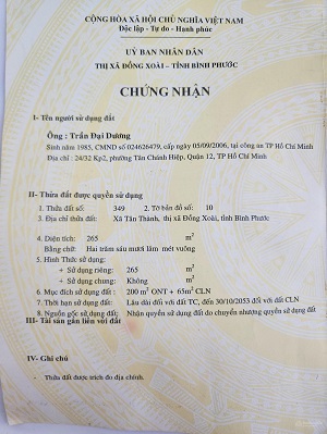Đ/c: Xã Tân Thành, Đồng Xoài, Bình Phước