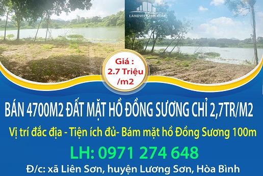 CHỈ 2,7TR/M2 NHẬN NGAY VỀ TAY 4700M2 ĐẤT MẶT HỒ ĐỒNG SƯƠNG