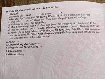 Dt: 96.5m2 trong đó có 50m2 thổ cư.