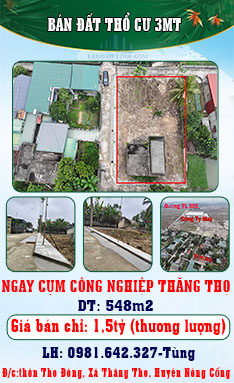 CHÍNH CHỦ BÁN ĐẤT THỔ CƯ 3MT NGAY CỤM CÔNG NGHIỆP THĂNG THỌ