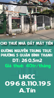 CHÍNH CHỦ CẦN CHO THUÊ NHÀ ĐẤT MẶT TIỀN ĐƯỜNG NGUYỄN TRUNG TRỰC PHƯỜNG 5 QUẬN BÌNH THẠNH