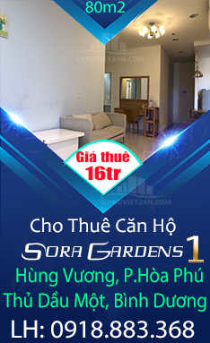 Chính Chủ Cho Thuê Căn Hộ Sora Gardens 1 – Dự án Sora Gardens, Đường Hùng Vương, Phường Hòa Phú, Thủ Dầu Một, Bình Dương