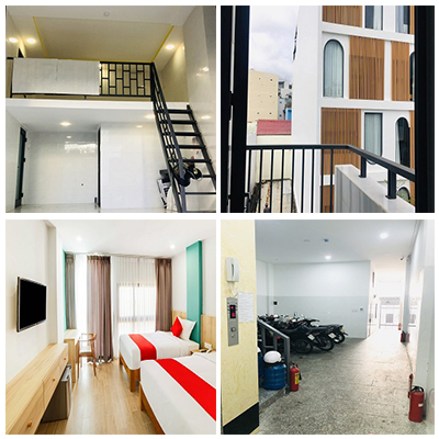 View xịn xò, 2 giàn nước nóng, Camera 24/24, hệ thống PCCC, thang máy, lối thoát hiểm, các phòng tường đều ốp full gạch men xung quanh phòng sạch sẽ cửa sổ thông thoáng, wc riêng từng phòng, quạt hút mùi, cửa sổ, giếng trời, phơi đồ trên sân thượng, kệ bếp nấu ăn, bồn rửa chén, nhà để xe…