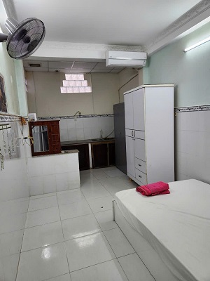 1. Phòng trệt: 25 m2 có quạt hút mát; nội thất: có kệ bếp nấu rộng rãi, tủ lạnh, máy lạnh, quạt, giường nệm, tủ quần áo, bình tắm nước nóng, WC riêng; tiện cho người có gđ, giá thuê 3,6tr đ/tháng.