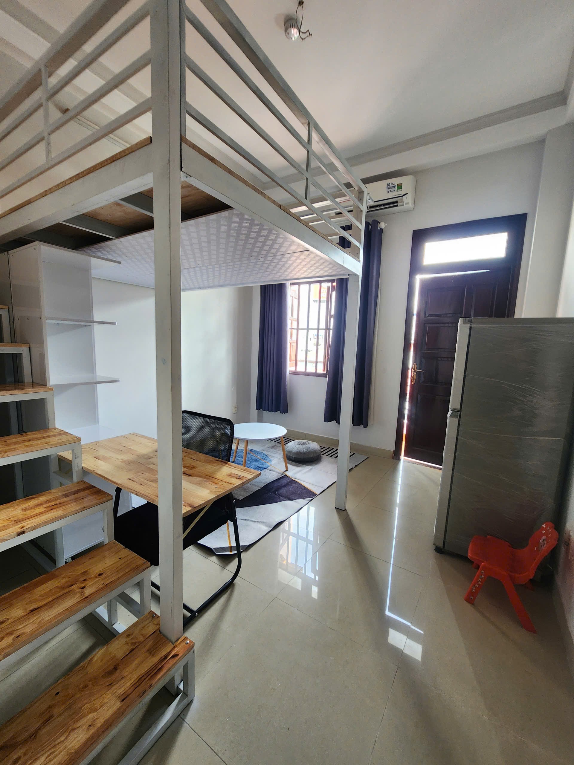 + Phòng có ban công, cửa sổ thoáng, sạch đầy đủ nội thất: Máy lạnh, giường nệm, tủ quần áo, bàn ghế, máy giặt sấy, tủ lạnh, wc khép kín,…