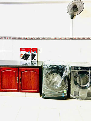 +Phòng thoáng, sạch, đầy đủ tiện nghi: máy lạnh, máy giặt, máy sấy quần áo, tủ lạnh, máy lọc nước,wifi….Tất cả đều miễn phí! Nhà xe rộng. Điện 4k/kw, nước 18k/m3.