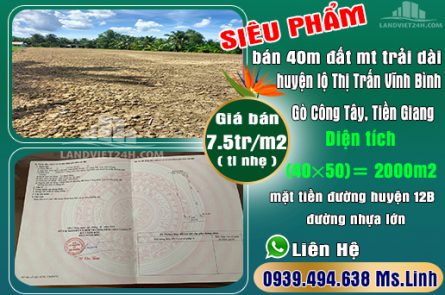 SIÊU PHẨM bán 40m đất mặt tiền trải dài huyện lộ Thị Trấn Vĩnh Bình, Gò Công Tây, Tiền Giang.