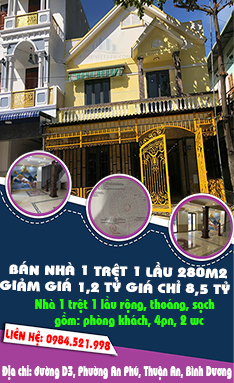 SIÊU RẺ- CHÍNH CHỦ CẦN BÁN NHÀ 1 TRỆT 1 LẦU 280M2, GIẢM GIÁ 1,2 TỶ GIÁ CHỈ 8,5 TỶ , DÒNG TIỀN 15TR/THÁNG TẠI AN PHÚ, TP.THUẬN AN, BÌNH DƯƠNG